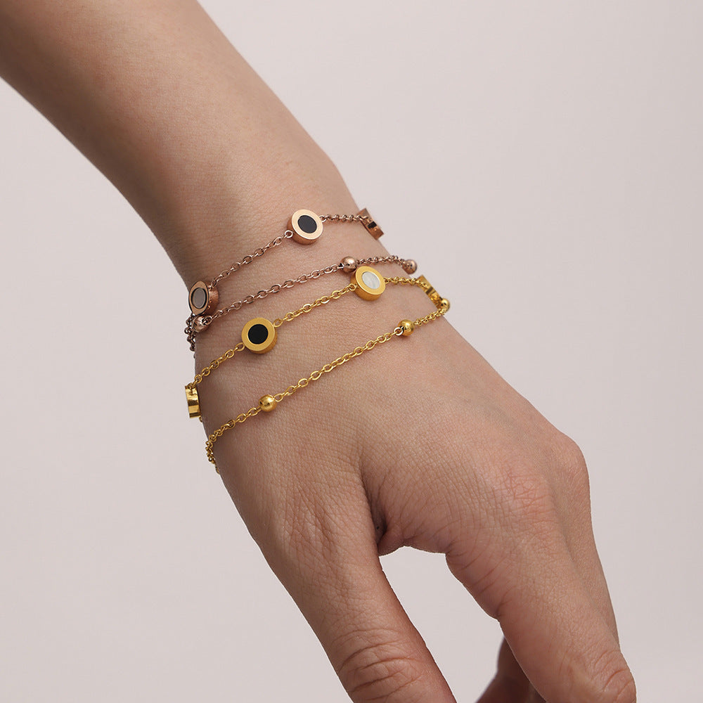 Adjustable Love Series Jewelry - Roman Numeral Engraved Pendant with Natural Black White Shell Beads, Hypoallergenic 18K Gold Plated Stainless Steel-ALB