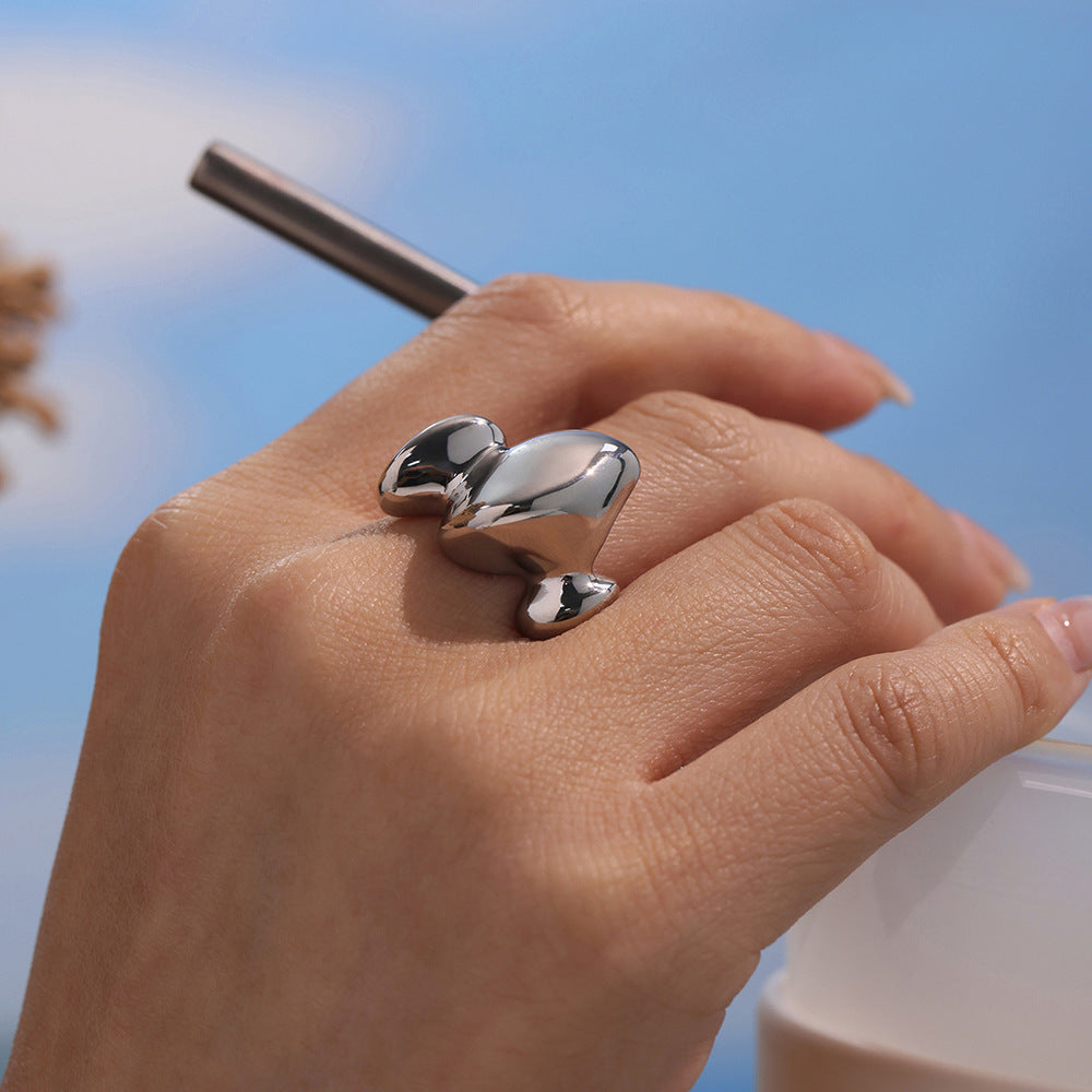 European and American Style Geometric Two-Tone Ring - PVD 18K Gold Plated Over Stainless Steel, Heavy Duty Open Cuff Finger Ring-ALB