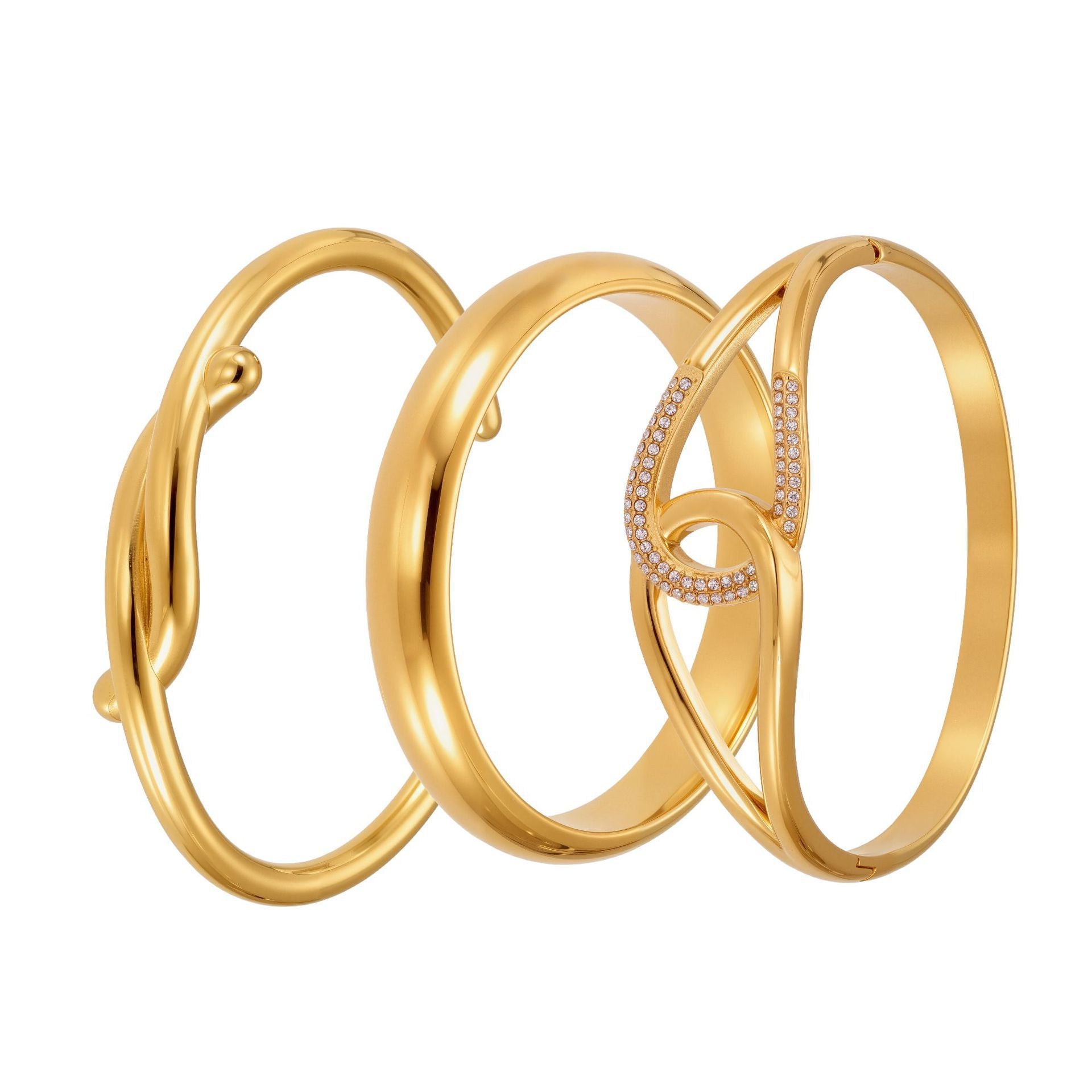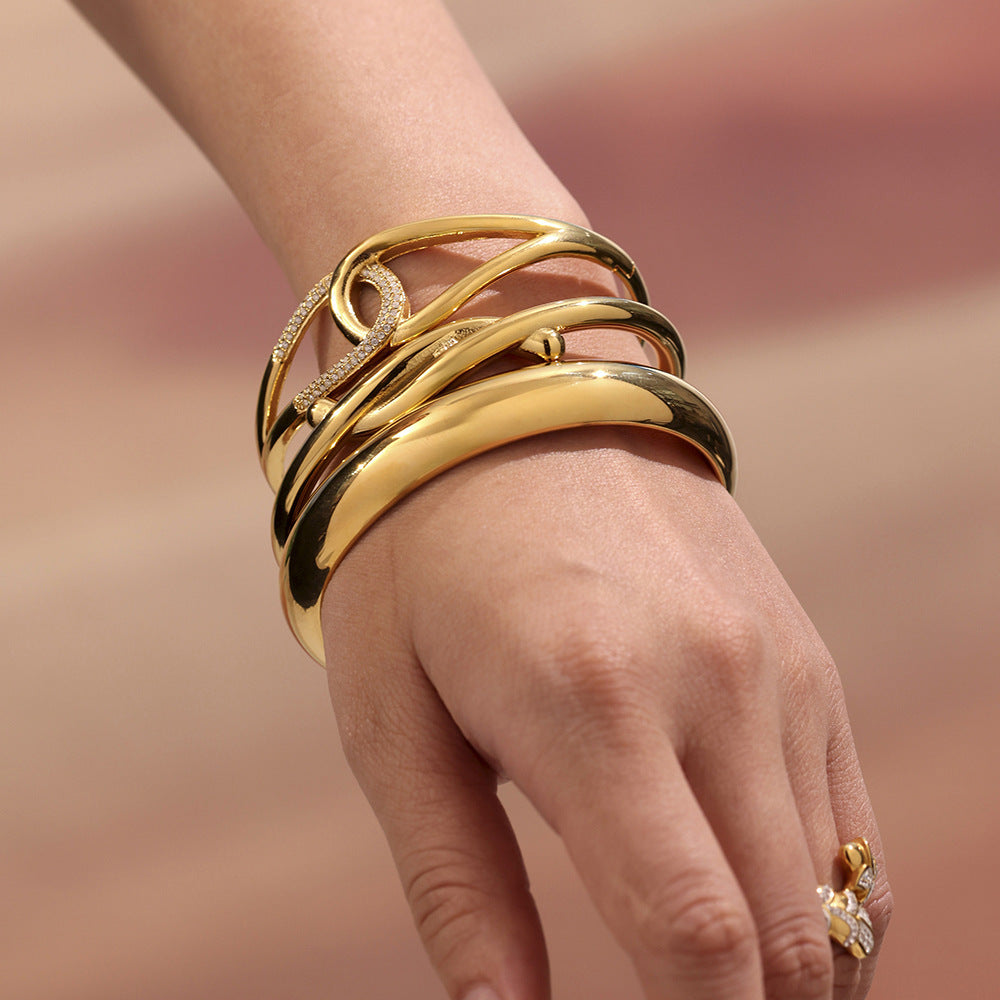 Open Cuff Horseshoe Clasp Bracelet with Zirconia - Minimalist Design in Stainless Steel, Hypoallergenic Statement Jewelry for Women-ALB